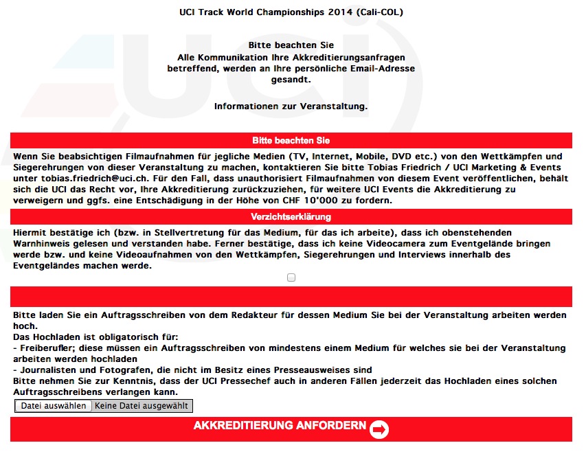 Die UCI hat eine unrühmliche Rolle in der jüngsten Vergangenheit gespielt und fördert mit solch restriktiven Auflagen auch nicht unbedingt den Radsport. Wir wissen ja schon, die Zeitungen haben kein großes Interesse an Radsport, ergo keine Redaktionsaufträge…