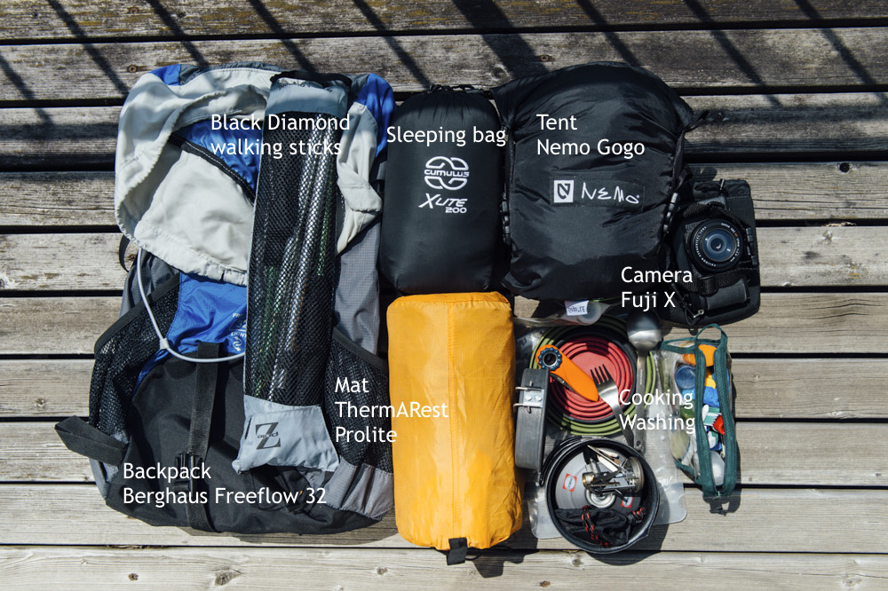 It is so good to travel with only the third of the weight that we used in 80ies. Many of the pieces that I collected over time may not be available in the shops anymore but this is still may favorite gear list. Not really optimized for low weight but it works for me.