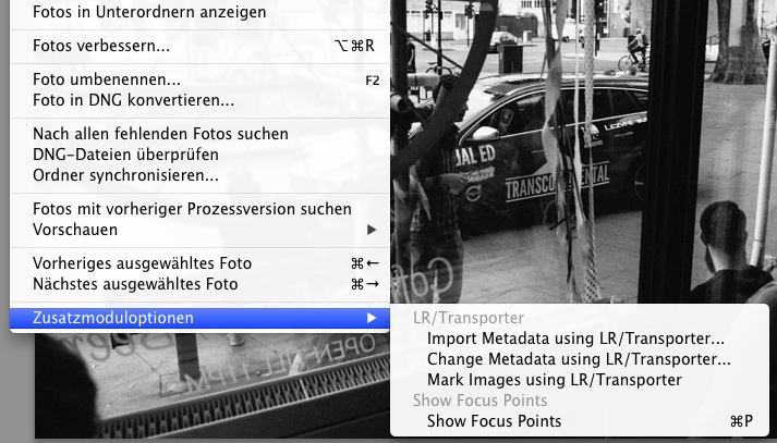 Das Plugin lässt sich per eigenem Shortcut aufrufen ( >Systemeinstellungen >Kurzbefehle >App Shortcuts +Adobe Photoshop Lightroom 5 Menü ” Show Focus Points”, dabei unbedingt die 3 Leerzeichen zu Beginn beachten, da Lightroom das Menü aus unerfindlichen Gründen einrückt.