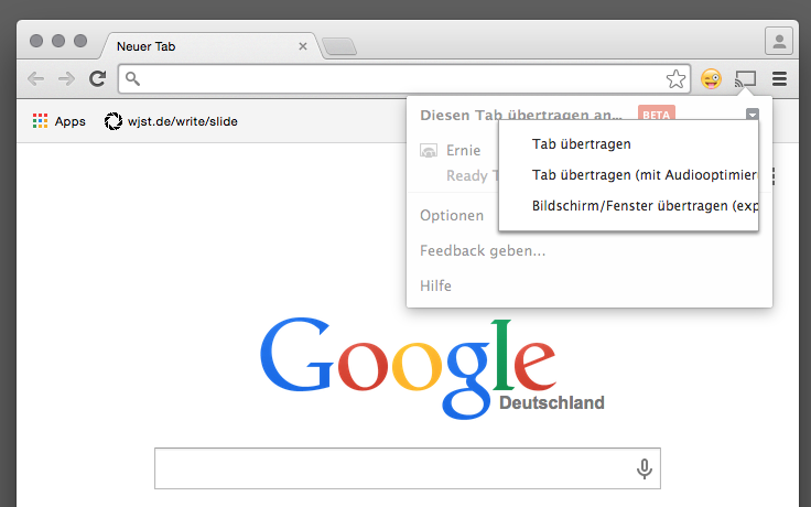 Bis dahin ist das nichts besonderes. Was aber wohl erst seit kurzem geht, ist die Spiegelung des kompletten Laptop Screens ( Macbook oder Windows ) über das Google Cast Plugin im Chrome Browser.