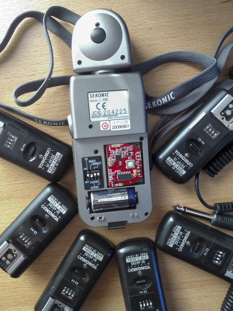 Seit letzter Woche kann der Sekonic nun auch die Yognuos direkt zünden dank einem eingebauten Funkmodul des Ingenieurbüros jpi electronic solutions in Happurg bei Nürnberg, das auf alle Sekonic passt, die für den EU Markt produziert wurden