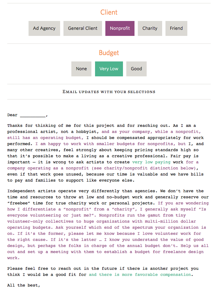 when a general client / a charity / a friend approaches you for a project? Jessica Hische has the answer on her website ;-)
