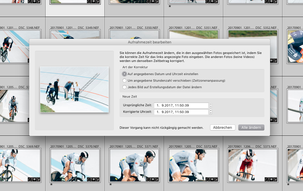 Back at home, the pictures of the first camera are selected in Lightroom and the capture time is shifted exactly to the displayed time of the first picture. This process is being repeated for each camera. The app results then allow a “who is who” on each picture.