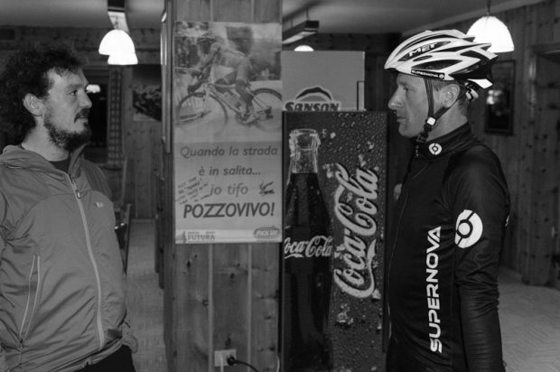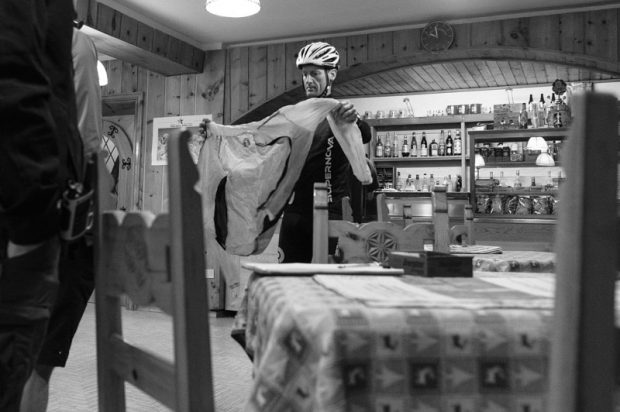 while the article is illustrated by an unrelated “dummy” photo. Here is the true arrival at checkpoint Stelvio Pass during TCR no 2.