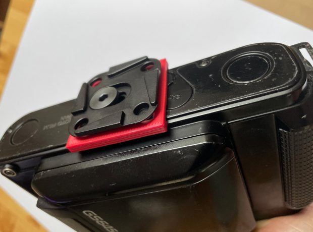 Bei meiner Fuji hatte ich mal eine Schblone gedruckt, welche die viereckige Peak Design Capture Plate in Position hält. Das geht wegen der seitlichen Führung nun aber nicht bei dem Swift Lock System, wo ich nun dasselbe mit einem S-förmig gebogenen Blech verhindere.