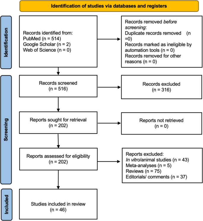 Unfortunately I am already stuck at the abstract with various numerical errors. The abstract says that 27 +ve, 9 null and 4 -ve studies were included (in total 40) but continues with 46 studies. The included chart has even more internal contradictions: 516-316 reports should be 200 and not 202 studies while 202-160 are 42 studies. Reading the consecutive text and tables is even more confusing..