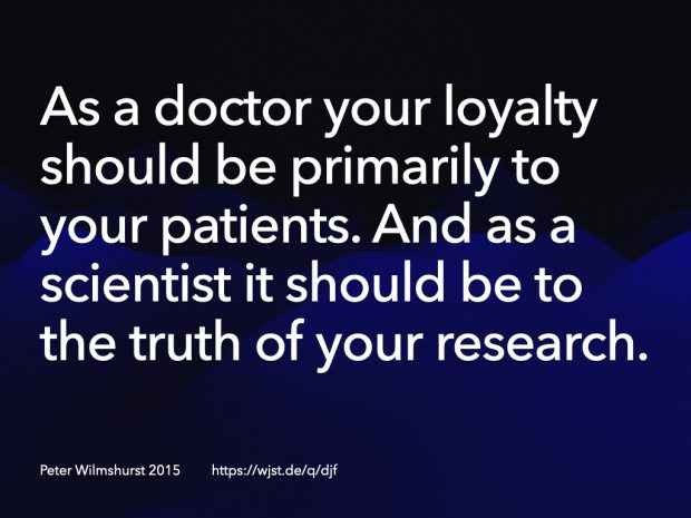 Wilmshurst: Well, you can try and discredit him, you can try to ruin his reputation and cast doubts on his results. That’s what was done with me. And then in the end you can sue him. The threat is often enough to keep him quiet.