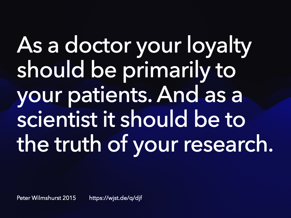 Wilmshurst: You have made the principal investigator sign a confidentiality agreement beforehand, so that you have control over the data. And you may put into the contract arrangements for a bonus in case of a positive result. (grins) This may help the researcher interpret the data in a more favorable way for you.