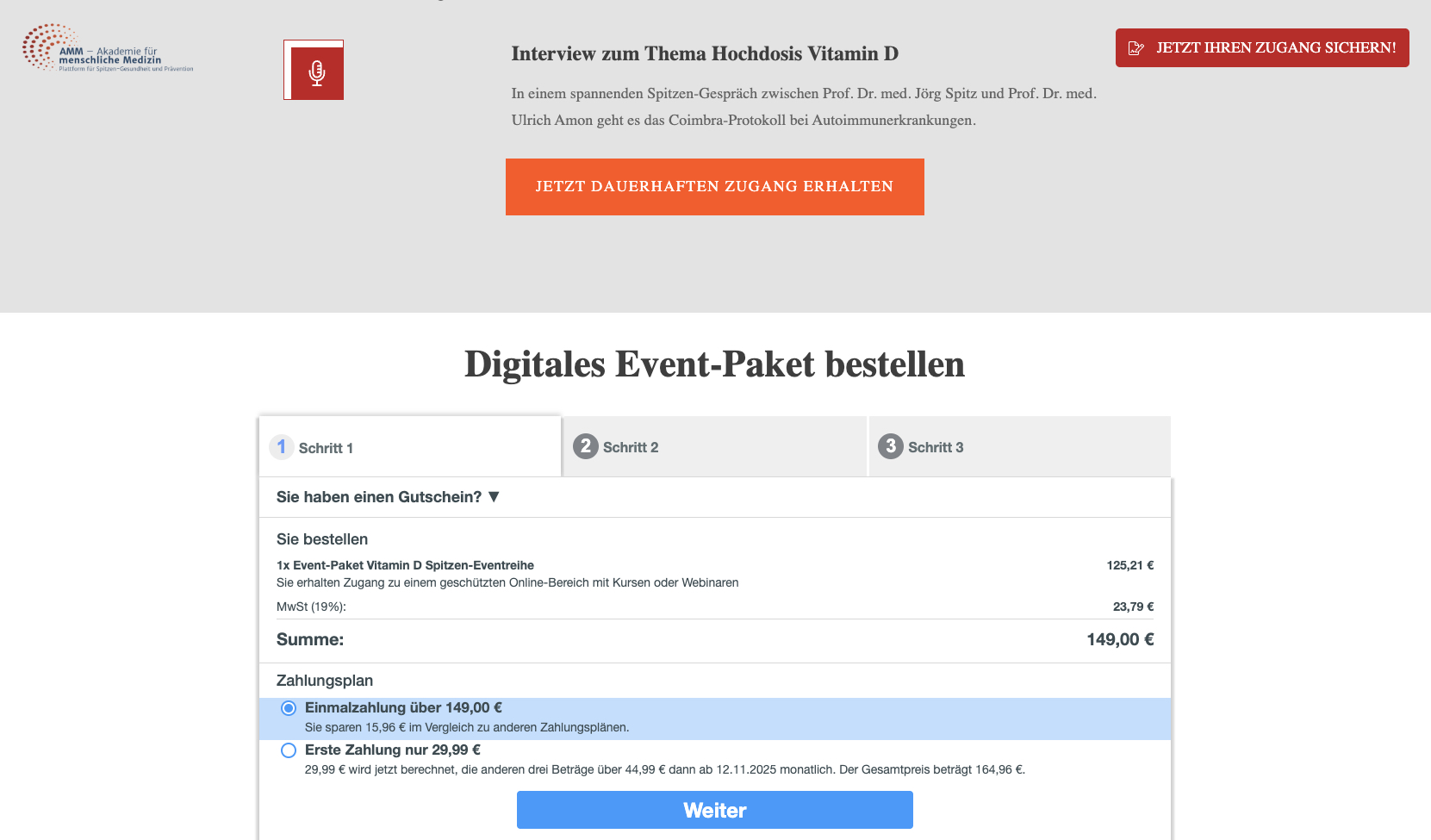 Gleichzeitig vertreibt Spitz aber sein “digitales Event Paket” online zur umstrittenen Hochdosis Vitamin D Therapie für 149€.